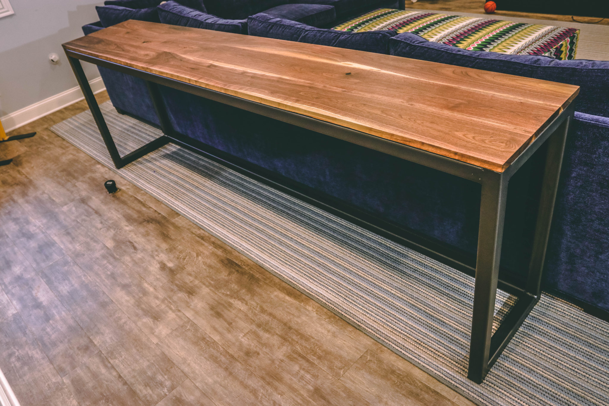 I love building industrial style furniture. The pairing of metal and wood in furniture is beautiful and something I really really enjoy. Here I am building a super easy industrial Sofa Table that will be used with bar stools. This build shows just how easy it is to make simple elegant and modern furniture just like this.