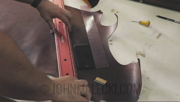 Pick your section of hide. Layout your selected area with a straight edge and cut your section using a brand new razor blade.
