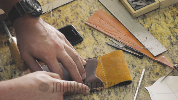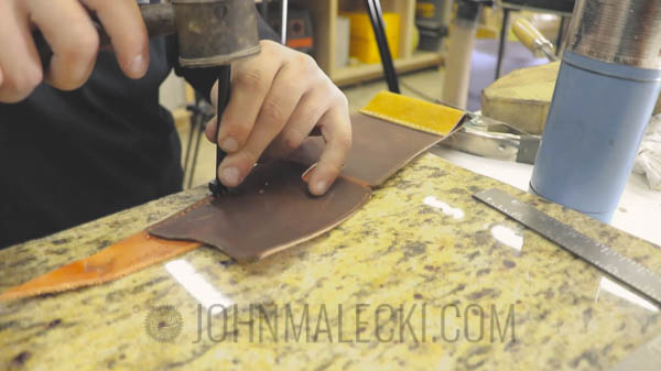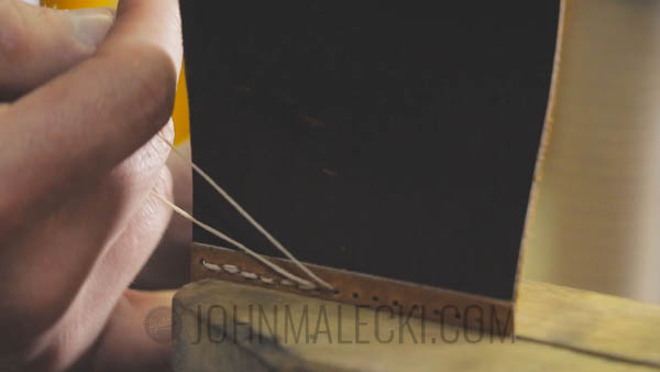 Repeat process for edge stitching. Mark holes, punch, and saddle stitch sides together.