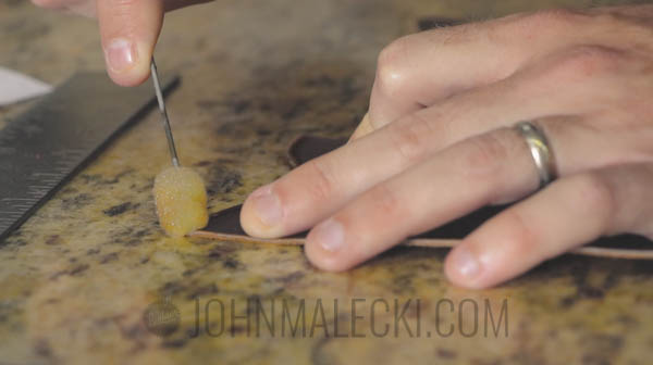 Apply Eco-Flo Gum Tragacanth to edge of bevelled curve. Burnish on the drill press.